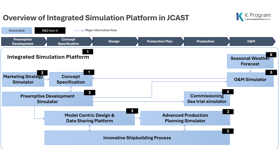 On October 1, a groundbreaking R&D project was launched to build a comprehensive simulation platform and demonstrate its application in real-world shipbuilding. The initiative is a joint effort by 10 leading organizations* in the maritime industry, including MTI Co., Ltd., the representative organization and a member of the NYK Group. The project, titled “Development of Integrated Simulation Platform for Sustainable and Competitive Maritime Industry,” has been adopted as an R&D concept by the Japanese government's Key and Advanced Technology R&D through Cross Community Collaboration Program (K Program), with a five-year duration until September 2030.