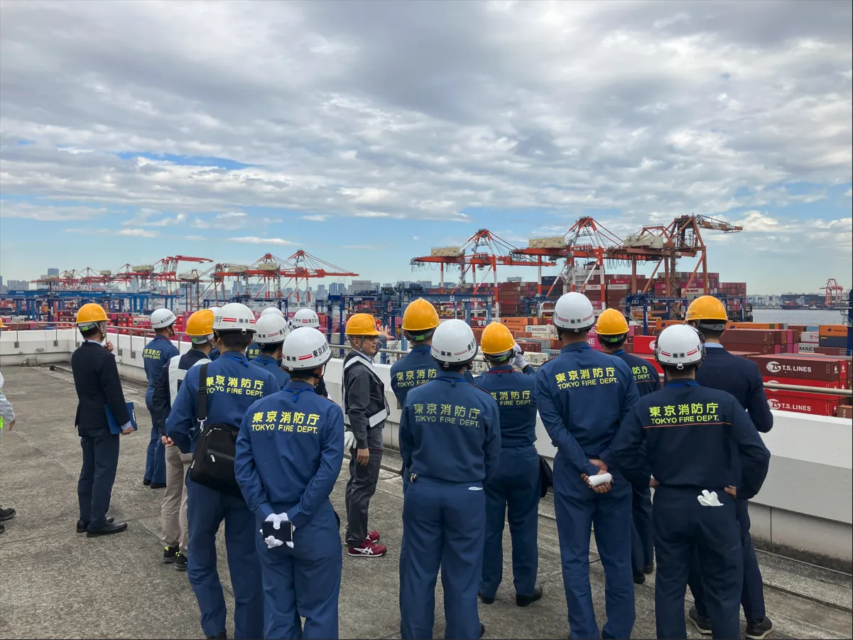 On October 24, NYK welcomed 15 members of the Tokyo Fire Department to the NYK Tokyo Container Terminal for a productive exchange of ideas aimed at strengthening collaboration and enhancing emergency-response capabilities in the event of a fire at the terminal or on a moored container ship.