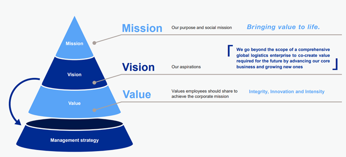 * Mission, Vision, and Values (MVV). Placing our management strategy for realizing our vision as a cornerstone, we have positioned MVV as the signpost directing all the Group's employees to act together to provide value to society.