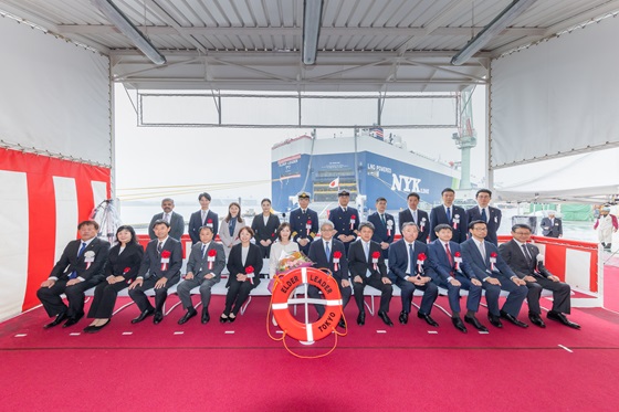 当社は3月31日、株式会社新来島どっく(以下「新来島どっく」)で建造を進めていたLNG(液化天然ガス)燃料自動車専用船(以下「本船」)の竣工にあたって愛知県の新来島豊橋造船所で関係者を招いて命名式を実施し、本船は株式会社タダノによって「Elder Leader(エルダー・リーダー)」と命名されました。本船は、当社が推進するLNG燃料自動車専用船の連続建造計画シリーズ(全12隻)のうちの1隻で、脱炭素設計とマリンDXを実装する次世代型の自動車専用船です。