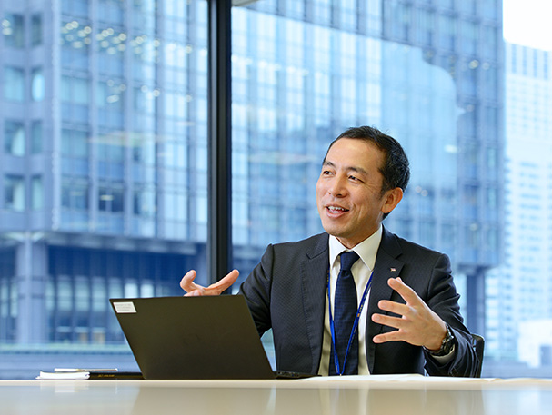 現在、海運・物流業界は大きな転換点に差し掛かっています。そのトリガーの一つとなったのが、脱炭素、カーボンニュートラル実現に向けた世界的な潮流です。当社は、海運業を中心とした総合物流企業グループであり、船舶による海上輸送においては主に重油を燃料としているため、多くの温室効果ガス(GHG)を排出します。つまり、当社グループがGHG排出量を削減していくためには、船舶からの排出をいかに減らしていくかが重要なテーマとなります。グローバルにサプライチェーンを支えている海運業の脱炭素化なしには社会全体のカーボンニュートラルは達成できないという課題意識の下、2050年に排出量ネット・ゼロエミッションを達成する目標を掲げました。その実現のために、技術革新やステークホルダーとの共創など、あらゆることに取り組んでいく考えです。長期的には世界経済は今後も着実な成長が見込まれる中、それと並行して海運による荷動きも拡大することが予想されます。まさに、脱炭素とビジネスの成長を持続的に両立させるという、新たなチャレンジが始まっているのです。